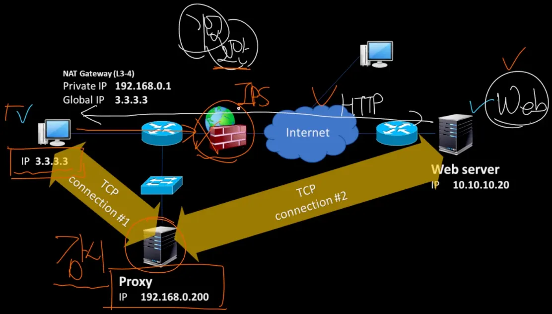 IPS, SSL accelerator, WAF 등을 리버스 프록시로 볼 수 있다.
