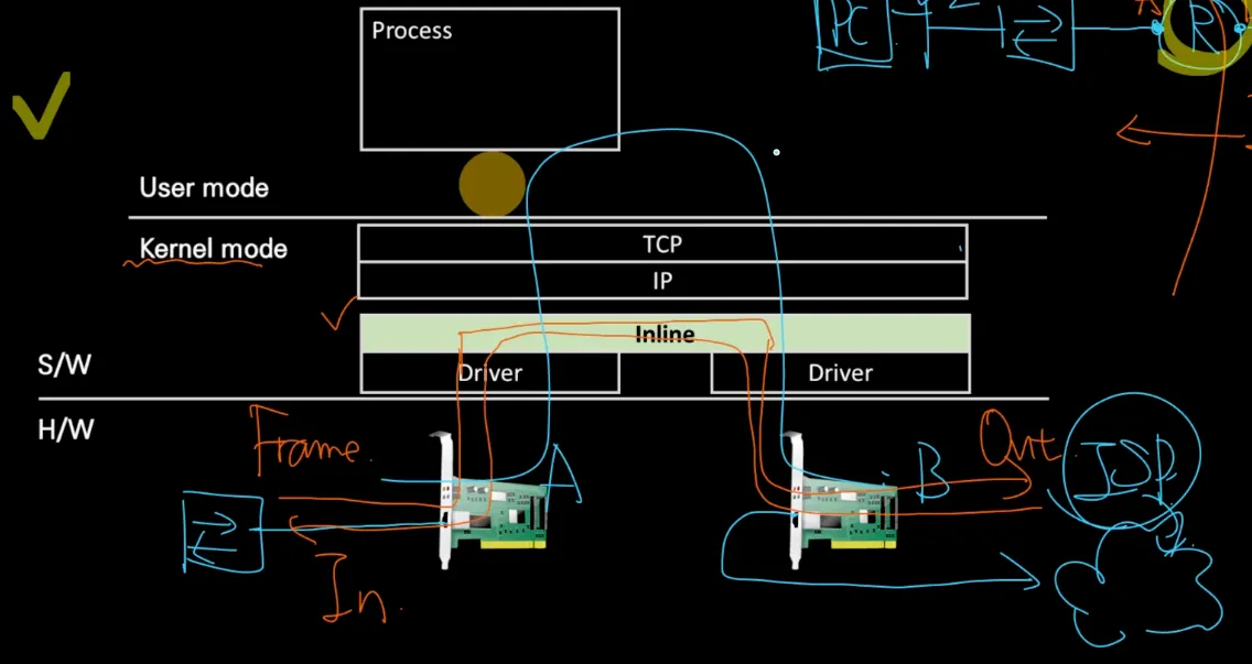 inline 장치는 OS에 속하며 커널모드에서 작동한다.