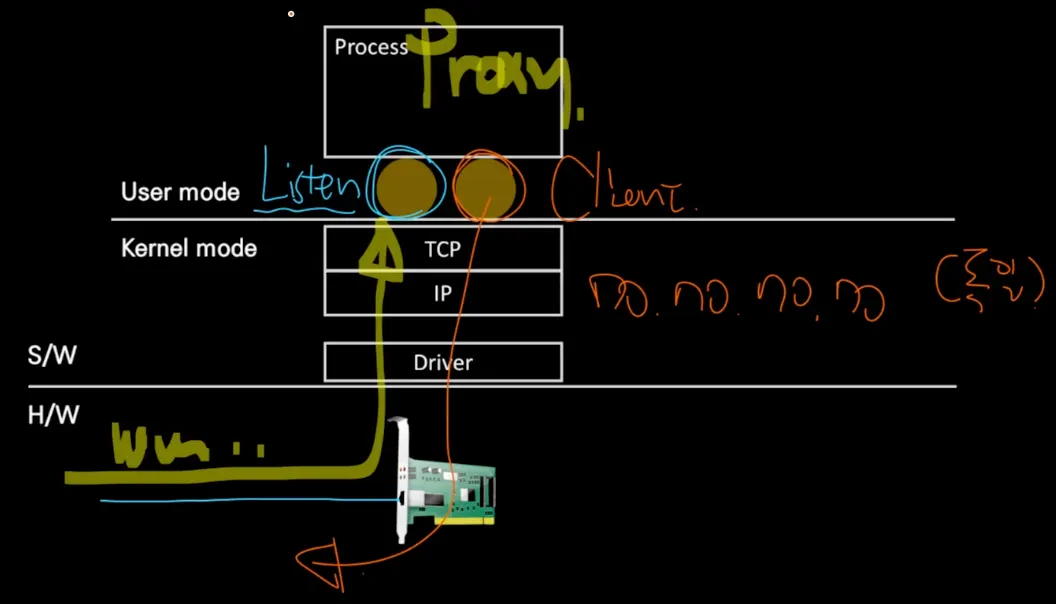 프록시 서버는 Socket을 LISTEN용, CLIENT용 2개를 연다.