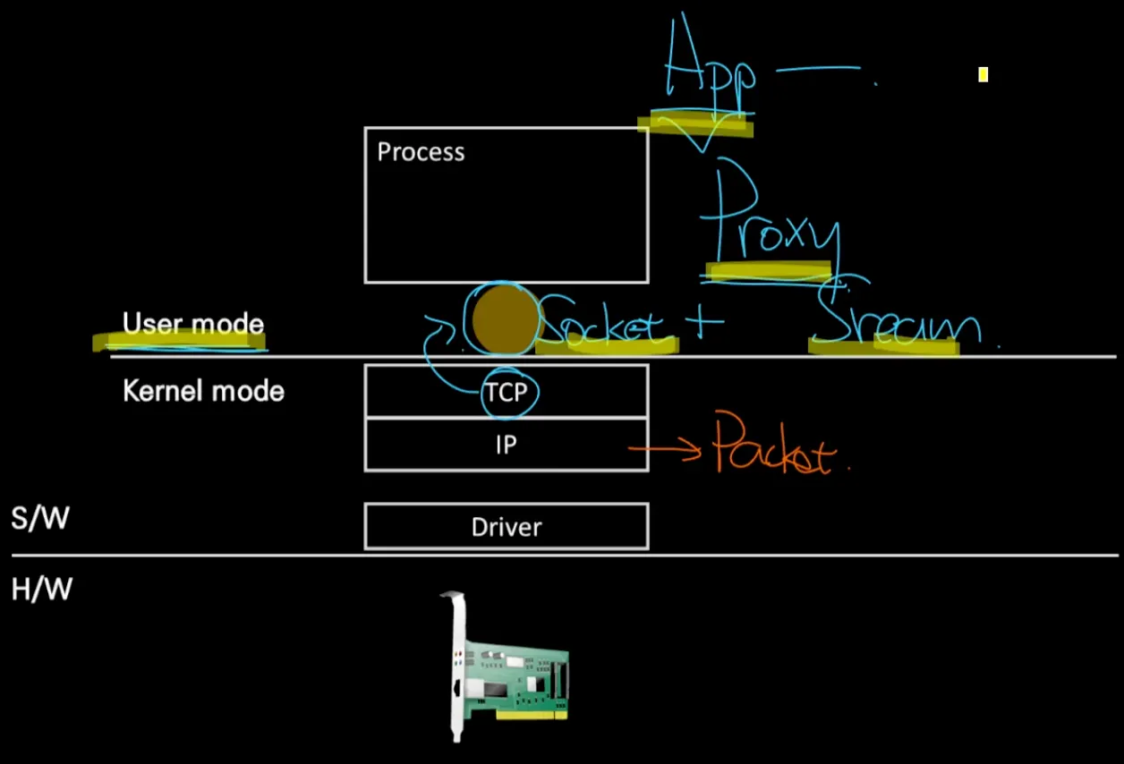 user mode의 application에서 socket을 통해 stream 데이터를 사용하므로 L7 Layer