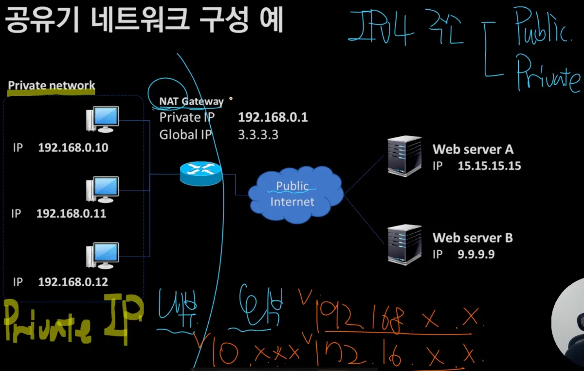 NAT를 기준으로 Public(Global) network와 Private network가 존재한다.