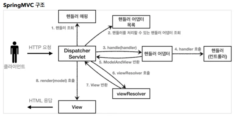 ์ด ์ฌ์ง์ Spring MVC ๊ตฌ์กฐ์์ HTTP ์์ฒญ์์๋ถํฐ ์ปจํธ๋กค๋ฌ๊น์ง๋ฅผ ํฌ๊ฒ ๋ณด์ฌ์ฃผ๋ ์ฌ์ง์