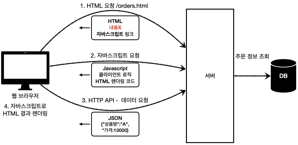 HTML이 아니라 주로 JSON형식의 데이터를 전달한다.