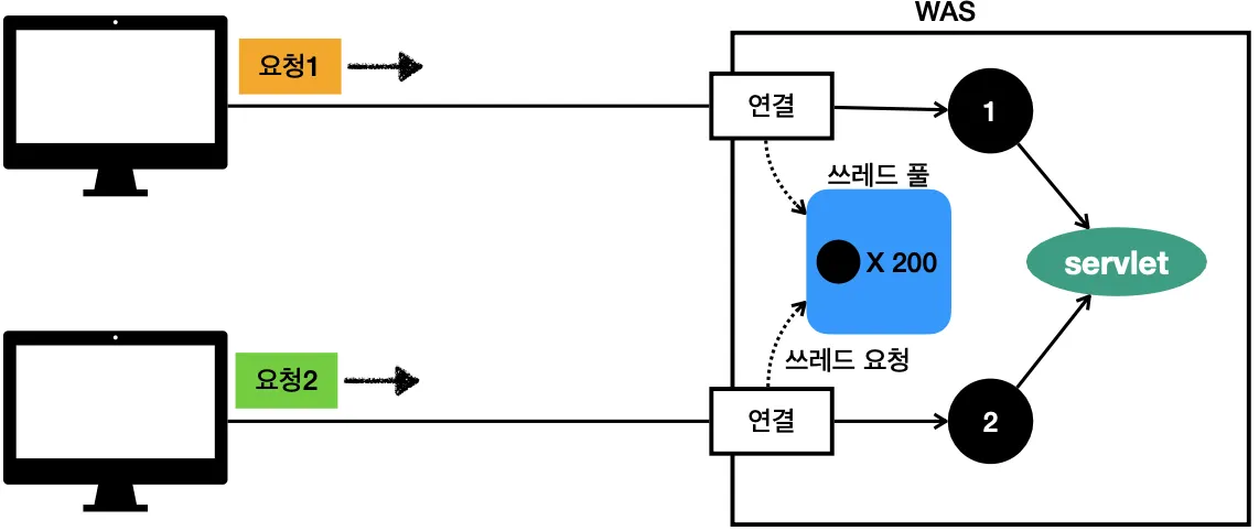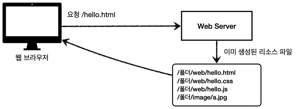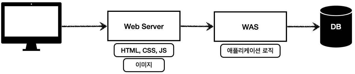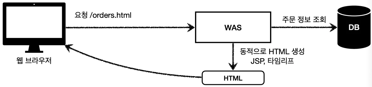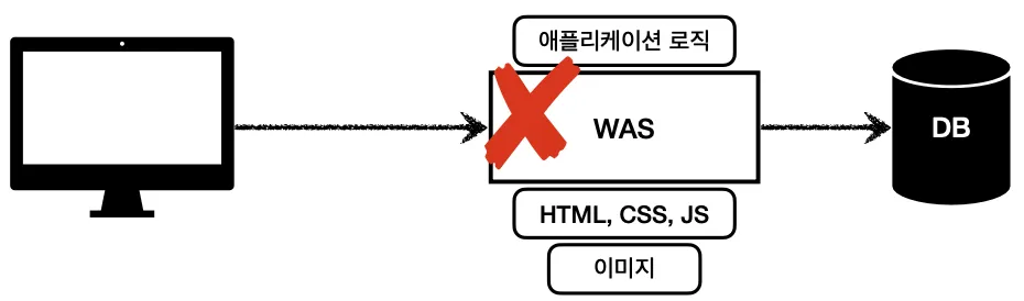 WAS, DB만으로 시스템을 구성할 수 있다 (정적 리소스, 애플리케이션 로직 모두 제공)