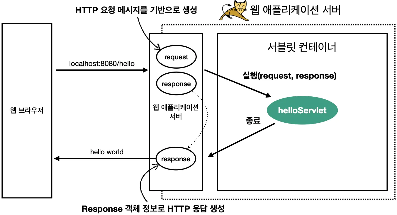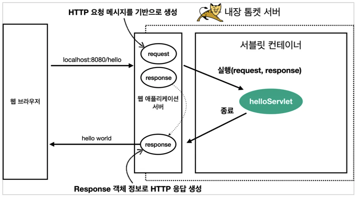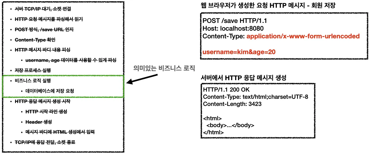 HTTP 요청 시 비즈니스 로직을 제외한 나머지 과정들은 서블릿이 자동으로 해준다.