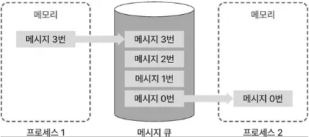 FIFO 형태의 큐 자료구조를 사용해 프로세스 간 메시지를 주고받는 방식이다.