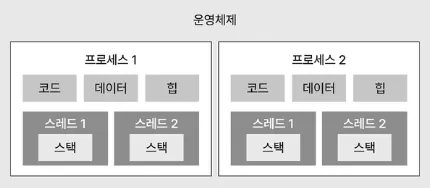 스레드는 프로세스 안에 존재하므로 프로세스의 메모리 공간을 이용하고 지역 변수를 저장하는 스택 영역을 할당받는다.