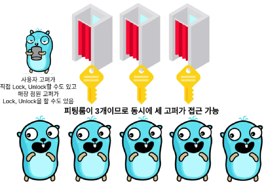 화장실 개수(열쇠 개수)는 공유 자원에 접근할 수 있는 프로세스의 수를 제어하기 위한 정수 변수를 나타낸다.