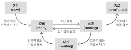 프로세스는 한 상태에서 다른 상태로 다음과 같이 변화한다.