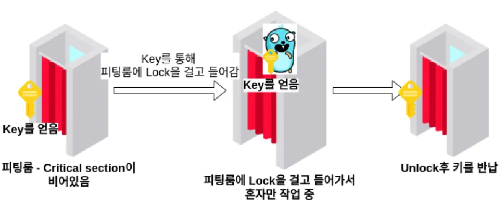 뮤텍스의 작동 방식은 열쇠가 하나 뿐인 화장실과 같다.