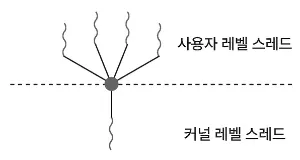 이 방식은 하나의 사용자 레벨 스레드에서 시스템 콜을 호출하면 다른 사용자 레벨 스레드가 모두 실행되지 않는 다대일 모델의 단점을 해결한다.