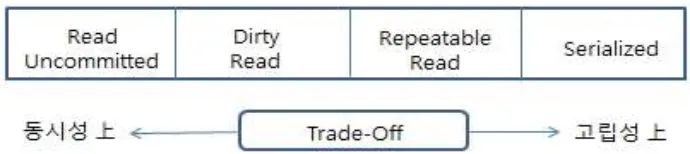 반면, 고립성을 높이면 하나의 트랜잭션이 처리 중일 때 다른 트랜잭션의 접근이 제한되어 효율이 낮아진다.