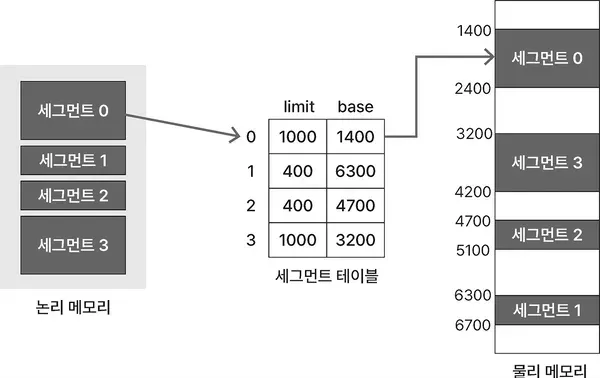 이 기법은 세그먼테이션 테이블(segment table)을 사용해 세그먼트의 논리 주소를 물리 주소로 매핑한다.
