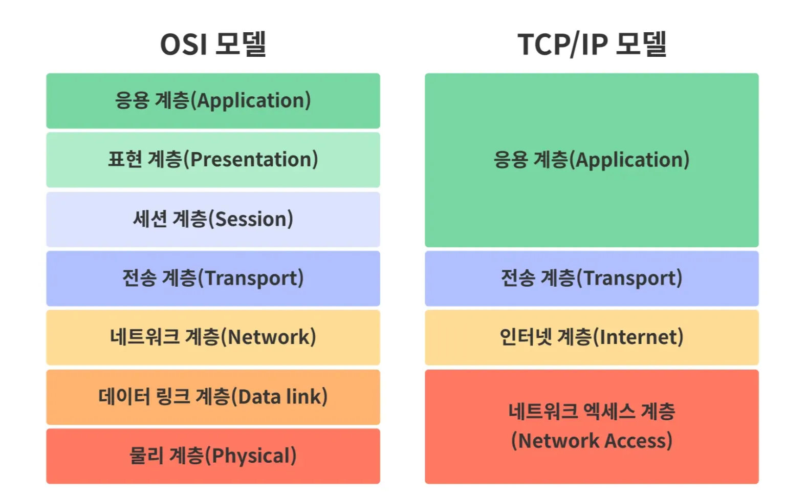 TCP/IP에 맞춰 네트워크 통신 표준인 OSI 7계층을 단순화한 것이 TCP/IP 4계층이다.