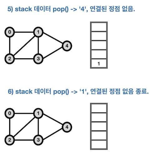 만약 최대 깊이인 정점에 도달했다면 방문한 정점들은 역순으로 재방문하면서 탐색 가능한 정점이 있는지 확인한다.