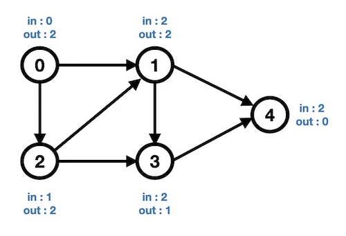 해당 정점으로 향하는 간선의 수를 의미한다.