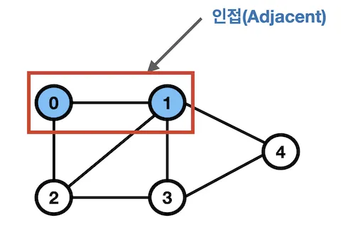 두 정점이 간선으로 연결되어 있으면 인접하다고 한다.