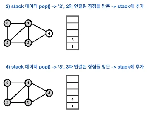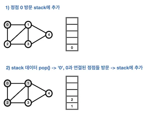 깊이 우선 탐색은 재귀 호출 또는 스택으로 구현할 수 있다.