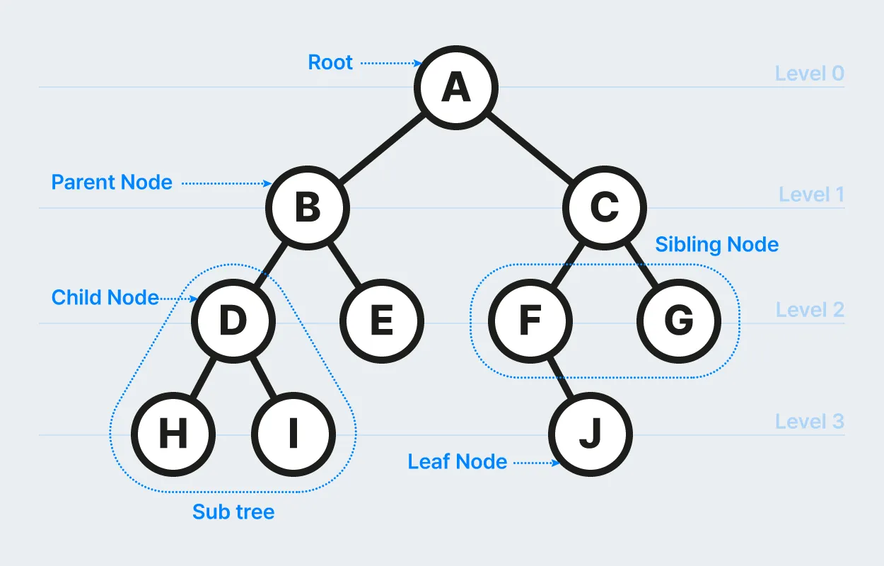 트리(tree)는 그래프의 한 종류로 사이클이 없어서 계층적 관계를 표현할 수 있다.