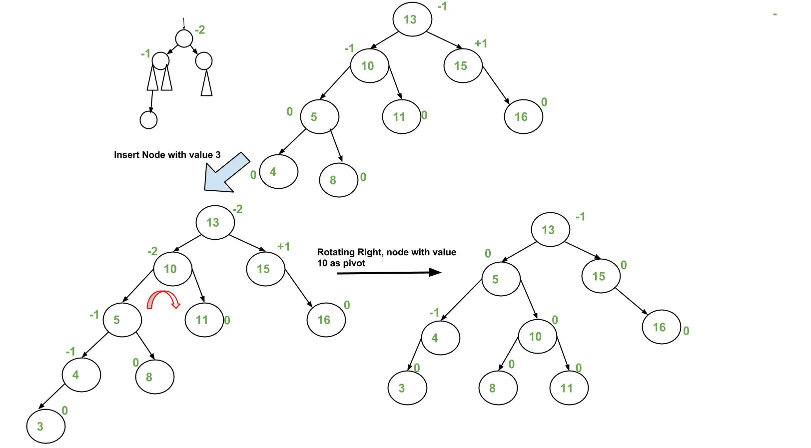 왼쪽으로 불균형을 이룰 경우에 가운데 노드를 중심으로 오른쪽으로 회전해서 균형을 맞춘다.