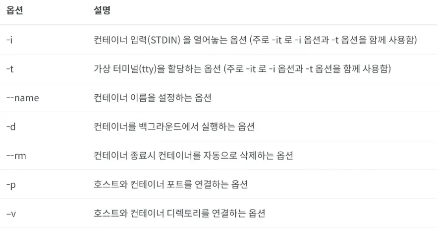 $ docker run -it -d --rm --name [컨테이너명] [이미지명:태그] #컨테이너 이름을 붙이고 표준입력과 가상터미널을 붙여 백그라운드로 이미지를 실행하고 종료 시 삭제