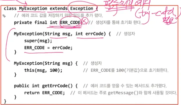 우리가 직접 예외 클래스를 정의할 수 있다