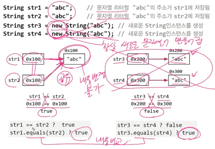 StringBuffer는 equals()가 오버라이딩되어 있지 않다 (주소비교)