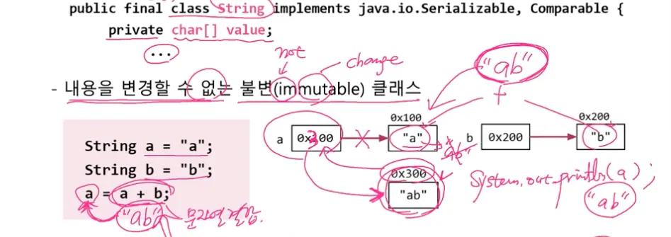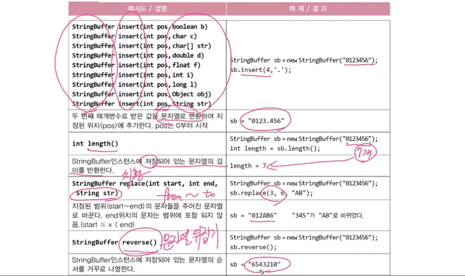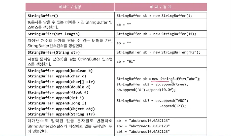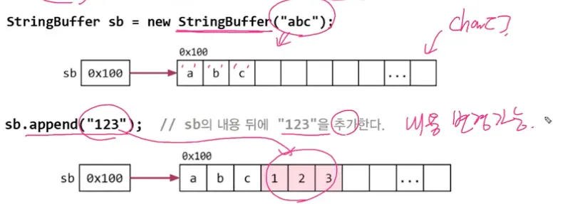 문자열 결합이나 변경이 잦다면 내용 변경이 가능한 StringBuffer를 사용한다