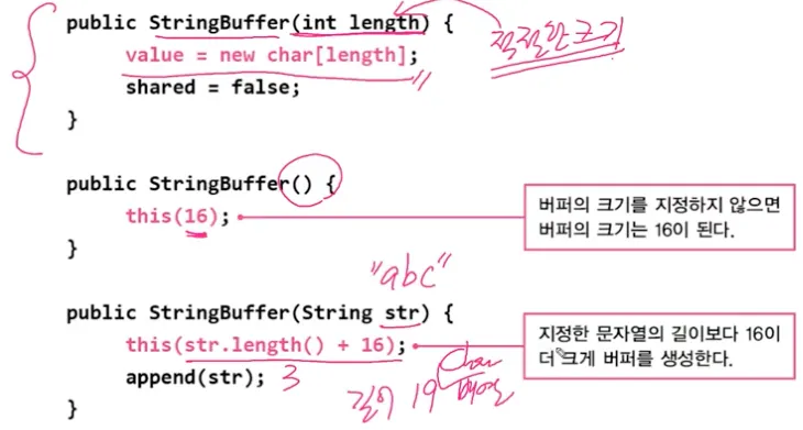 StringBuffer는 저장할 문자열의 길이를 고려해서 적절한 크기로 생성해야 한다