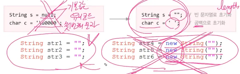 내용이 없는 문자열로 크기가 0인 char형 배열을 저장하는 문자열이다