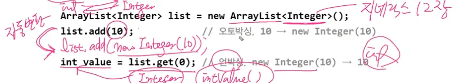 오토박싱 : 기본형 int → 래퍼클래스 Integer