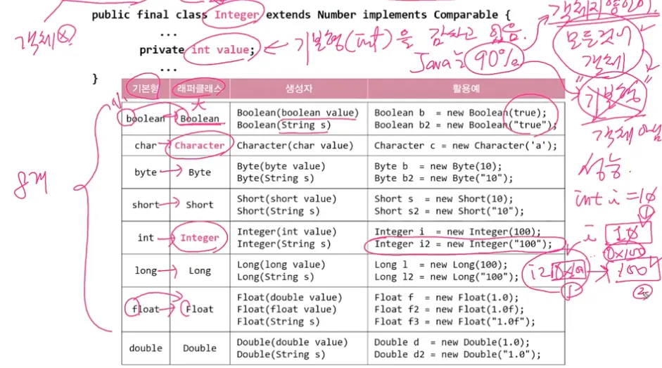 (jdk1.5 이후 컴파일러가 wrapper 클래스를 .intValue()를 통해 기본형으로 바꿔준다)
