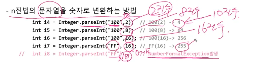int i = Integer.parseInt(”100”); //올드한 옛날 방법