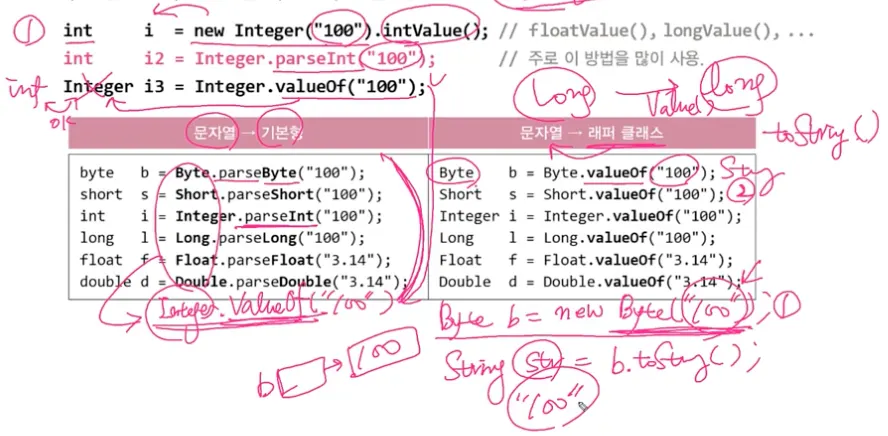 int i2 = Integer.valueOf(”100”); //요즘 방법