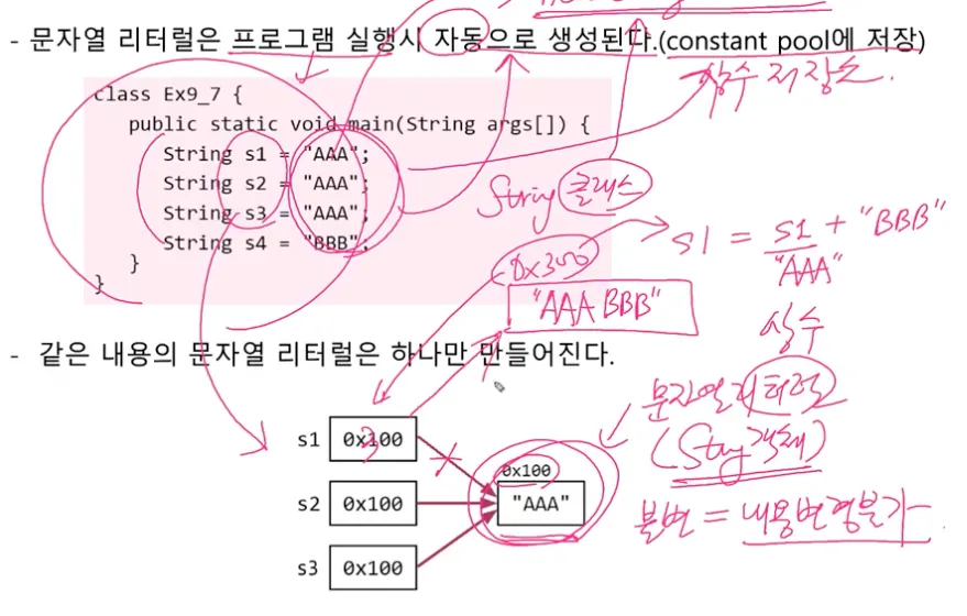 (문자열 결합 시 객체를 새로 생성하므로 대입 시 새로 생성된 객체의 주소로 바꿔주기 때문에 객체가 계속 늘어난다)