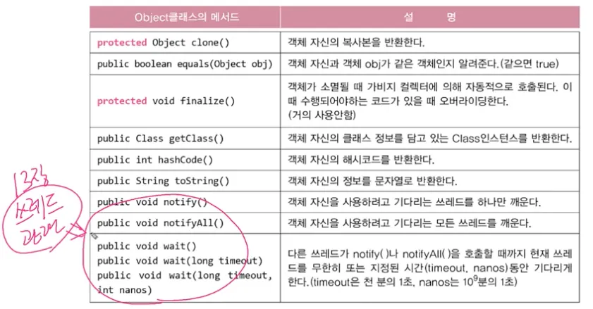 notify(), wait() 등은 쓰레드와 관련된 메서드이다