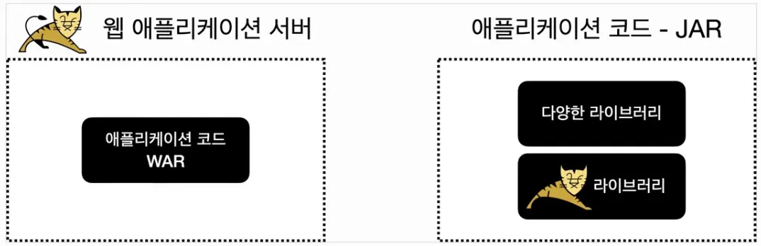 과거에 자바로 웹 애플리케이션을 개발할 때는 먼저 서버에 톰캣 같은 WAS를 설치