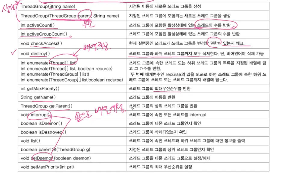 스레드 그룹의 메서드