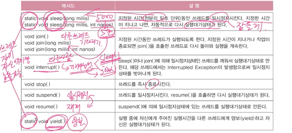 스레드의 실행을 제어할 수 있는 메서드가 제공된다