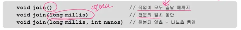 지정된 시간동안 특정 스레드가 작업하는 것을 기다린다