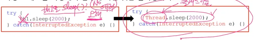 예외처리를 해야 한다 (InterruptedException이 발생하면 깨어남)