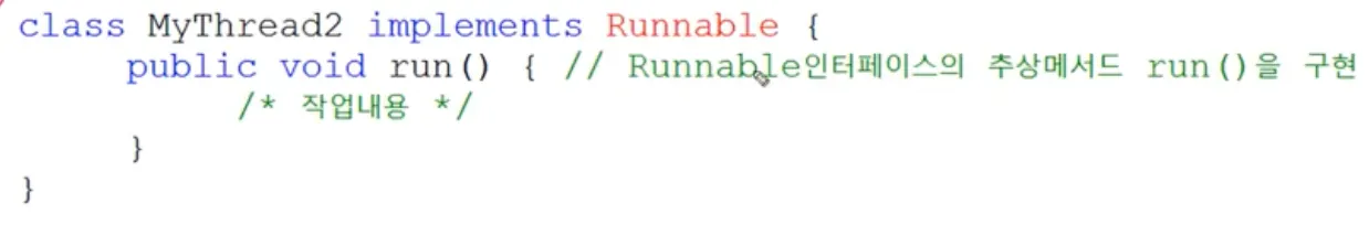 Runnable 인터페이스를 구현 (Better! 다른 클래스 상속 가능)