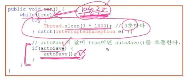 가비지 컬렉터, 자동저장, 화면 자동갱신 등에 사용된다