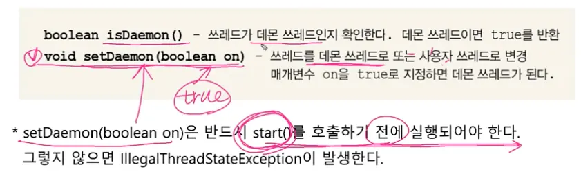 스레드는 ‘사용자 스레드'와 ‘데몬 스레드' 두 종류가 있다