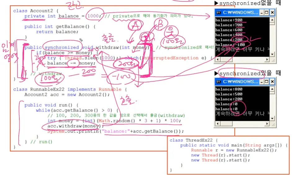 스레드의 동기화(synchronization)
