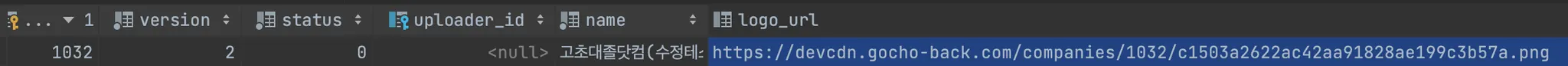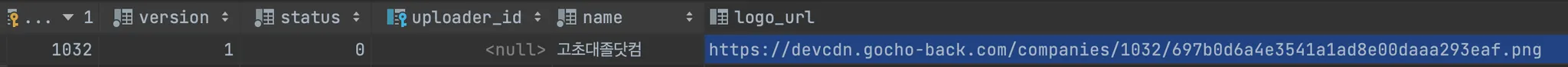 기업 수정에서 로고를 수정하였을 때 아까와는 다른 CDN URL이 저장된 것을 확인할 수 있습니다.