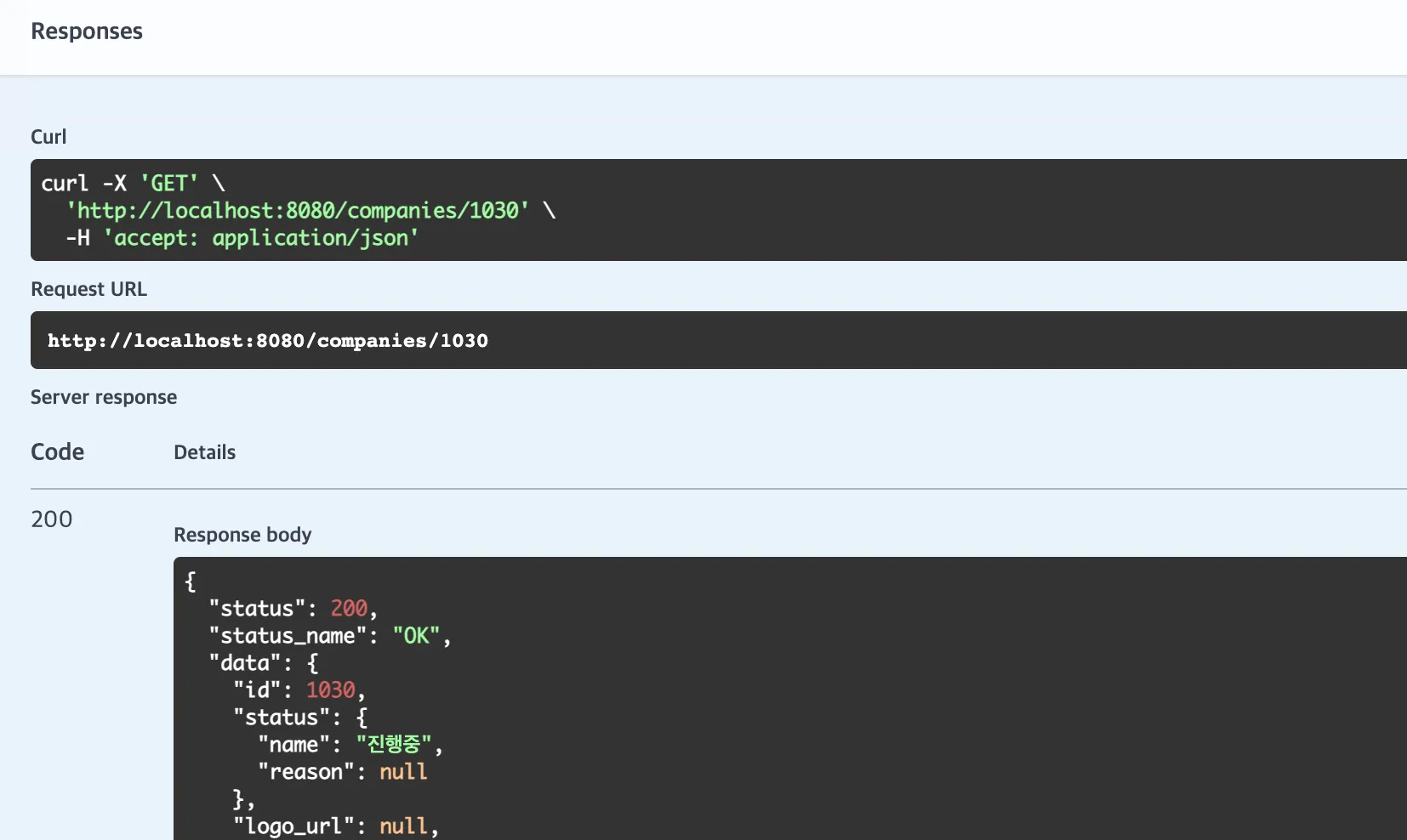 로고가 등록되지 않은 경우엔 정상적으로 null이 출력되었습니다.