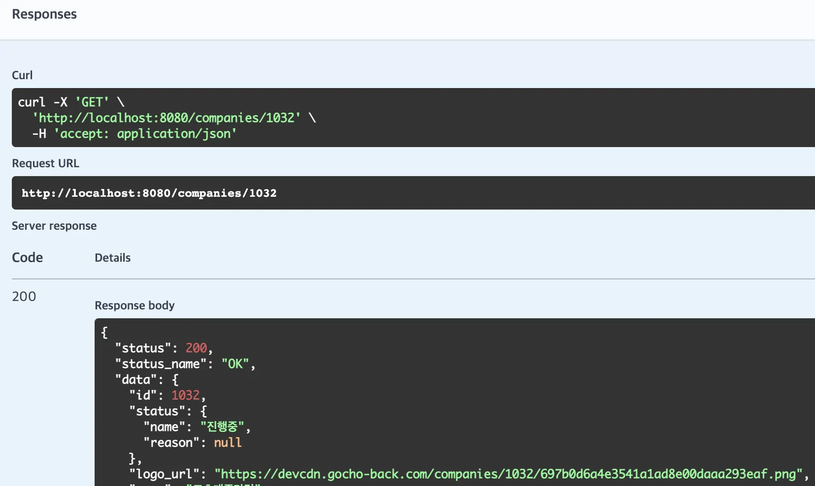 위 코드처럼 조회 시 기업 로고 URL이 들어가는 부분은 S3에 logo.png라는 이름의 파일을 GET 요청으로 있는지 확인한 후 CDN URL을 문자열 조합해 직접 넣어주는 방식이었습니다.