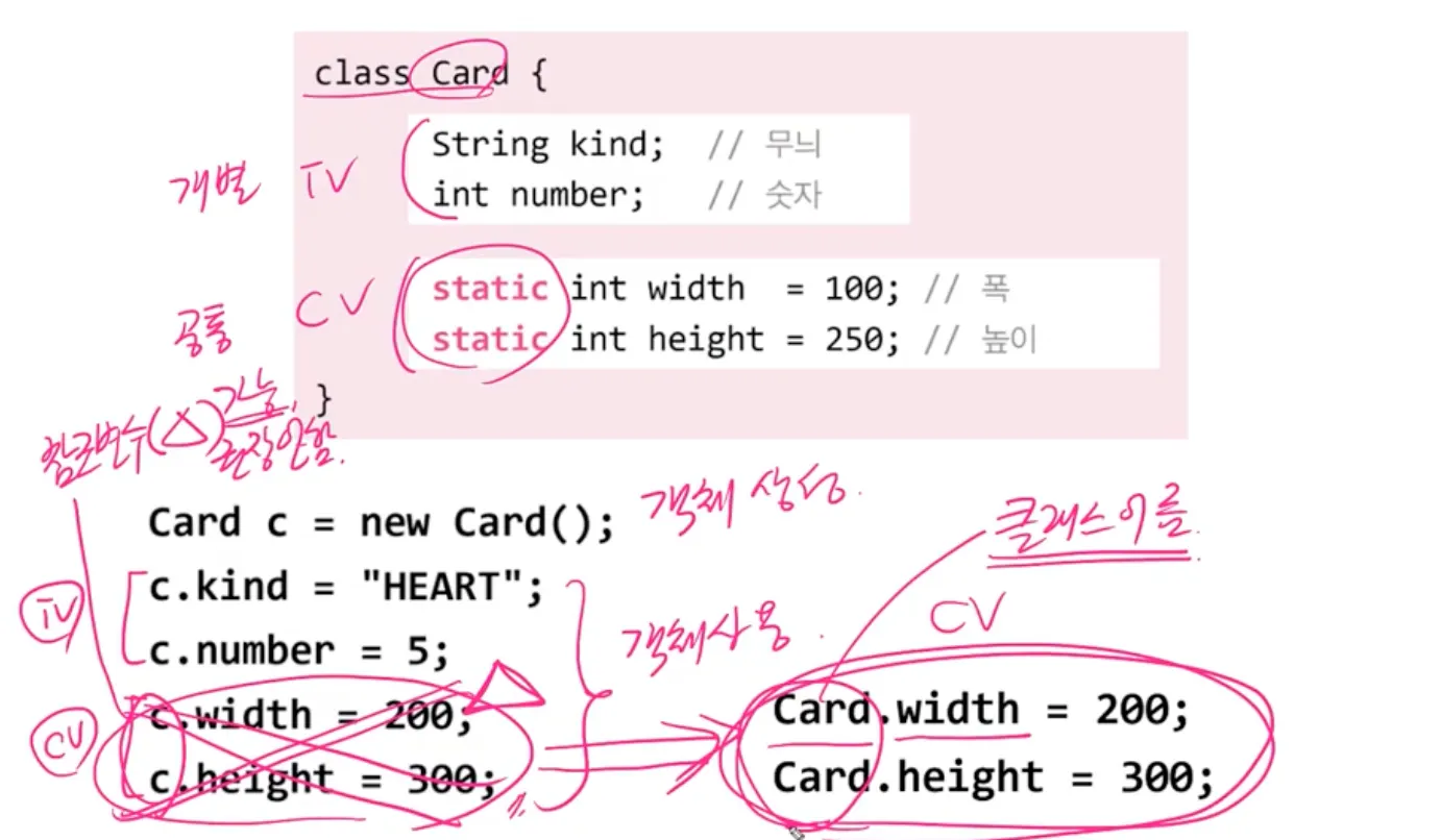 static이 붙어야 클래스 변수고 아무 때나 쓸 수 있다
