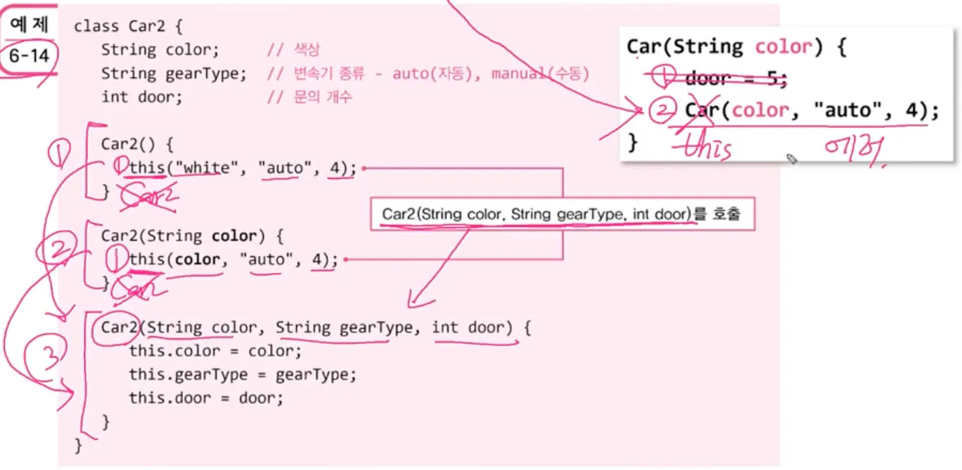 같은 클래스에서 생성자를 호출 할 땐 this()로 사용